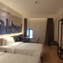 Điều đáng nói là Qingyan và Damin, những người phụ nữ ở quầy lễ tân, rất nhiệt tình. Họ đã giúp tôi in những tài liệu tôi cần để ra nước ngoài và kéo dài thời gian lưu trú của tôi. Họ thực sự rất hữu ích! Tôi cực kỳ hạnh phúc và vị trí rất thuận tiện. Tôi sẽ chọn khách sạn này để ở lại khi trở về Trung Quốc! 😎😎😎