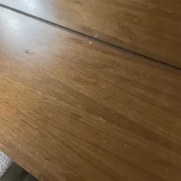 Căn phòng cần được dọn dẹp cẩn thận. Trên bàn có nhiều lớp vết dầu do khách trước để lại. Cơ sở vật chất của khách sạn hơi lạc hậu nếu vệ sinh không tốt sẽ trông càng bẩn hơn.