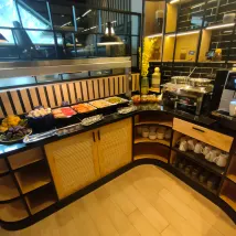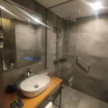 Lúc đó là khoảng 10h30 tối ngày chúng tôi nhận phòng. Bạn tôi hơi lo lắng vì không mang theo đồ ngủ. Tôi bảo khi đặt phòng thì có hình áo choàng tắm. Chúng tôi gọi cho lễ tân và hỏi, và cô ấy đưa cho chúng tôi áo choàng tắm. Câu trả lời là áo choàng tắm chỉ có trong dãy phòng. Sau đó, chúng tôi xuống mua đồ ăn mang về và liên lạc với lễ tân xem họ có thể cho chúng tôi một chiếc không. Quầy lễ tân bắt đầu làm đủ loại Một lúc sau họ nói dì đi làm và không có chìa khóa, một tầng chỉ có một bộ nên dì sẽ giúp chúng tôi tìm. Thế là chúng tôi đành phải đi tìm. đi lên lầu. Chờ hồi lâu vẫn không thấy nên tôi gọi lại thì cô ấy nói vẫn đang tìm, tôi không nói nên lời, kết quả cuối cùng chỉ là một chiếc áo choàng tắm dùng một lần, nhưng có còn hơn không. Chúng tôi cũng biết rằng do vấn đề môi trường nên hầu hết các phòng khách sạn đều không chủ động cung cấp đồ vệ sinh cá nhân dùng một lần, nếu cần, về cơ bản bạn phải nhờ lễ tân lấy. Vào ngày nhận phòng, chúng tôi được tặng bàn chải đánh răng, lược và khăn lau. xà phòng. Chúng tôi chỉ mở chúng ra để giặt trong ngày. Một loại kem đánh răng chưa được mở và một loại khác cũng chưa được mở. Việc hôm sau dì dọn phòng và mang đi là điều dễ hiểu. Đêm thứ hai chúng tôi quay lại khách sạn. Khách sạn khoảng 12 giờ vì lý do công việc. Chúng tôi gọi cho quầy lễ tân để hỏi xem họ có thể giúp giao hàng không, và họ thực sự nói rằng đường thang máy. Sự cố đang được sửa chữa, vì vậy hãy đợi một lát, nhưng chúng tôi chỉ lấy Thang máy lên chưa đầy mười phút, thực sự là trùng hợp. Sau khi chúng tôi thu dọn đồ đạc chuẩn bị đi ngủ mà vẫn chưa giao... Ngày hôm sau Khoảng 7h40 sáng, tôi gọi điện trước. lại bàn hỏi xem có thể giúp giao bàn chải đánh răng và kem đánh răng không. Họ bảo chúng tôi đợi hơn nửa tiếng mà vẫn chưa giao. 8h30 tôi xuống lầu để bắt tàu cao tốc nên tôi đến hỏi ý kiến lễ tân, hỏi sao không đợi được thì anh ta kiểm tra tin nhắn trong nhóm thì nói tin nhắn gửi ngày 6.51 nên mình gọi lúc 12h sáng và gọi lúc 7h40. vào buổi sáng không được thông báo kịp thời, điều đó là tốt. Sau đó, chúng tôi đánh răng tại bồn rửa trong phòng tắm ở tầng một. Đó là một trải nghiệm hay và mới lạ😶