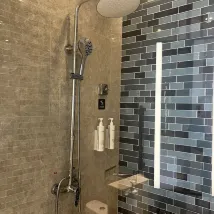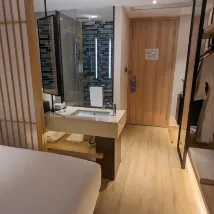 Phòng sạch sẽ và rộng rãi với hai giường. Thiết kế hiện đại chỉ có cửa trượt ngăn cách phòng tắm và khu vực ngủ. Cửa ra vào ở phía phòng tắm. Hơi bất tiện nếu ai đó cần ra vào khi một số người đang sử dụng phòng tắm. Nhìn chung mọi thứ đều tuyệt vời.