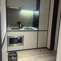 Thích hợp ở lâu dài, gần nhiều quán ăn. Máy giặt, bếp nấu và lò vi sóng có sẵn trong phòng. Tuy nhiên, một nắp chai còn sót lại trên mặt bàn toilet. Vì vậy, trình dọn dẹp có thể không triệt để nhất.