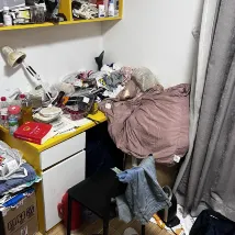 tôi đã bị sốc khi bước vào phòng, sàn nhà đầy đồ lộn xộn và rác, không có chỗ nào để bước lên! ! !