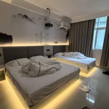 Phải đánh giá tốt, phòng rất đẹp, mình thực sự không ngờ lại có một homestay sạch sẽ như vậy ở thung lũng núi, phòng không quá lớn cũng không quá nhỏ, vừa vặn cho một gia đình ba người, phòng tắm cũng rất sạch sẽ, không có côn trùng lạ, mình đã chuẩn bị tinh thần gặp phải côn trùng trong phòng rồi, nhưng không gặp phải con muỗi nào, máy nước nóng rất hữu ích, homestay không nằm trên phố, rất yên tĩnh để ngủ bù vào ban ngày, và cũng rất gần khu danh lam thắng cảnh. Khi bạn đến khu danh lam thắng cảnh, ông chủ sẽ đón bạn, nhà hàng nhỏ do chị gái ông chủ giới thiệu cũng rất ngon, có nồi gas, chó dễ thương, vịt và gà, ông chủ của Thung lũng Vương Tiên cũng có cách chơi ẩn giấu, đưa chồng tôi đi ngắm bình minh, tôi bị đau đầu và không dậy được, nếu có cơ hội đi lần nữa, tôi chắc chắn sẽ đặt nhà của họ, và tôi phải ở lại hai ngày, một ngày chơi ở khu danh lam thắng cảnh, một ngày chơi xung quanh, nước máy ở khu vực nhà trọ này không có vị clo, nó ngon hơn nước ở Cảnh Đức Trấn. Phàn nàn duy nhất có thể là đèn cảm ứng dưới gầm giường, quá sáng, ông chủ nên tháo đèn cảm ứng ra. Điểm nổi bật là đồ dùng trong nhà trọ đều là đồ dùng dùng một lần và rất sạch sẽ. Thật đáng tiếc khi tôi không chơi trò chèo bè.