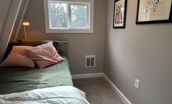 Relax in the cozy living room and enjoy a family movie or game night. Prepare a meal in the fully equipped kitchen and share a picnic on the patio. Rest under the stars in the hammock or while roasting marshmallows around the firepit. Enjoy sunrise coffee on the deck with beautiful views and sounds of nature. Or stay snuggled in bed with plentiful pillows and covers, reading a favorite book in the warm lamp light.