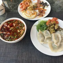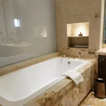 Phòng rộng rãi với cảm giác như phòng suite mở. Trong phòng tắm có lò sưởi điện, giúp phòng tắm rất ấm áp vào mùa đông. Nước khoáng trong phòng rất ngon. Chúng tôi phải bắt chuyến bay sớm nên bữa sáng vội vã, nhưng khách sạn có món Xíu mại Ma, một đặc sản của Thẩm Dương, cho bữa sáng. Thật bất ngờ thú vị khi chúng tôi có thể ăn mà không cần ra nhà hàng bên ngoài. Xíu mại nhân thịt bò rất ngon. Chỉ mất hơn 10 phút đi taxi từ sân bay. Tôi không ngờ nó lại gần và tiện lợi đến vậy.