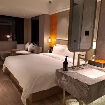 Nhân viên lễ tân rất ân cần và lịch sự. Phòng khách còn đưa ra danh sách để bạn xin kem rửa tay, nước vệ sinh, viên cồn,… từ quầy lễ tân. Robot sẽ giao hàng kịp thời. Phòng cũng rất rộng rãi và ngăn nắp. Phòng giường đôi có đủ chỗ cho hai người. Bữa sáng không có nhiều loại nhưng đều phù hợp và có đồ ăn nhẹ nhỏ. Vị trí của khách sạn cũng rất thuận tiện, chỉ mất 3-4 phút đi bộ từ ga tàu điện ngầm Long Thành Square. Gần đó cũng có nhiều trung tâm mua sắm và hiệu sách lớn. Tôi sẽ ở lại đây lần nữa.