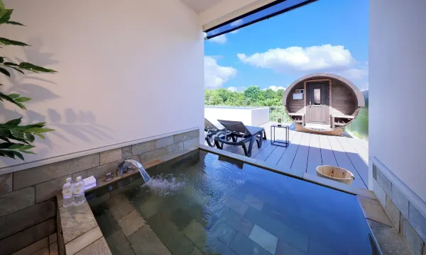 房間設施齊全,有溫泉、按摩池、泳池、桑拿、燒烤爐、電器及餐具等,浴室的設備齊全,風筒捲髮棒、面膜、護膚品等一應俱全