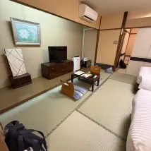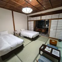 Đây là một khách sạn khá cũ với trạm xe buýt n*** tầng dưới. Khách sạn được bảo trì tốt, phòng ốc rộng rãi, với cửa trượt kiểu Nhật phân chia các khu vực, giúp dễ dàng di chuyển giữa các phòng, tạo cảm giác như đang ở nhà ninja. Phòng tắm riêng rất đáng đồng tiền bát gạo. Thật tuyệt vời khi được tận hưởng suối nước nóng bất cứ lúc nào!