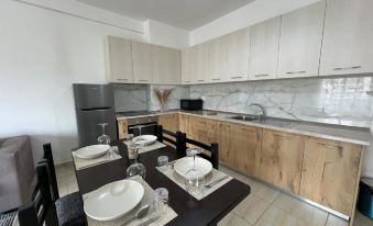 Welcome to your home away from home in the vibrant center of Shkodër. This beautifully designed apartment offers two spacious bedrooms and two modern bathrooms, perfect for families, friends, or business travelers seeking both space and style. The generous living area invites you to relax and recharge in comfort.