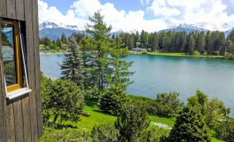 The building is on a sloping site. The floors are considered as levels and are counted from the ground. Very beautiful, cosy, comfortable residence "Golf Bellerive", built in 1973. In the district of Moubra, 1 km from the centre, in a sunny position, 20 m from the lake, 1.4 km from the skiing area, south facing position. In the complex: lift, storage room for skis, central heating system, washing machine, tumble dryer (for shared use, extra), drying room. Parking (limited number of spaces). Shop 1 km, supermarket 1.5 km, restaurant 400 m, bakery 1.2 km, bus stop "Sur Moubra" 10 m, railway station "Funiculaire Montana Gare" 2.1 km, grass beach 400 m, bathing lake "Moubra" 20 m. Golf course (18 hole) 2 km, tennis, indoor tennis centre 200 m, riding stable 1.1 km, skisport facilities 1.4 km, cross country ski track 400 m, ice rink 1.2 km. Well-known lakes can easily be reached: Lac Grenon 1 km, Etang Long 1.2 km. Please note: ski bus (free of charge). "Golf Bellerive 76", 1-room studio 35 m2 on 1st floor. Bright, fully renovated in 2011, tasteful and romantic furnishings: living/sleeping room with 1 double fold-away bed (160 cm, length 200 cm), cable TV and flat screen. Exit to the balcony, south facing position. Open kitchen (oven, dishwasher, 4 ceramic glass hob hotplates, toaster, kettle, electric coffee machine, Capsules for coffee machine (Nespresso) extra, raclette grill, fondue Set (chinoise, cheese)). Bath/WC. Balcony 5 m2, south facing position. Balcony furniture, deck chairs (2). Marvellous view of the lake, the mountains and the garden. Facilities: hair dryer. Internet (WiFi, free). Please note: non-smokers only.