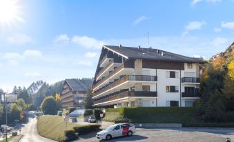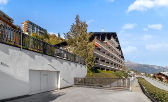 Residence "Marigny Dent-Blanche". In the district of Marigny, 1.5 km from the centre of Montana, in a quiet, sunny position, 150 m from the edge of the forest, 1.3 km from the lake, south facing position. In the complex: lift, storage room for skis, central heating system, washing machine (extra), tumble dryer (for shared use), drying room. Parking (limited number of spaces). Shop 1.5 km, supermarket 1.6 km, restaurant 1.5 km, bakery 900 m, bus stop "Marigny" 50 m, railway station "Funiculaire Montana Gare" 1.1 km, bathing lake "Moubra" 1.3 km. Golf course (18 hole) 3 km, tennis 1.4 km, indoor tennis centre 1.4 km, skisport facilities 1.3 km, ice rink 2 km. Well-known lakes can easily be reached: Lac Grenon 2.5 km, Etang Long 3 km. Please note: ski bus (free of charge). "Marigny Dent-Blanche 25", 2-room apartment 61 m2 on 3rd floor, south facing position. Partly renovated in 2024, comfortable furnishings: living/dining room with 1 sofabed (140 cm, length 190 cm), cable TV. Exit to the balcony, south facing position. 1 room with 1 french bed (160 cm, length 200 cm). Kitchen (oven, dishwasher, 4 ceramic glass hob hotplates, toaster, kettle, electric coffee machine, Capsules for coffee machine (Nespresso) extra, raclette grill, fondue Set (chinoise, cheese)). Exit to the balcony, north facing position. Sep. WC, bath or shower. Balcony furniture, deck chairs (2). Very beautiful view of the mountains and the valley. Facilities: hair dryer. Internet (WiFi, free). Please note: non-smokers only.