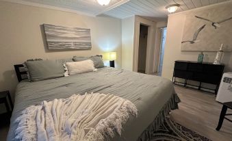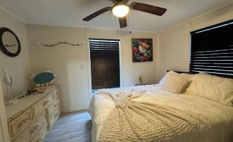 "Gull" villa at Barefoot Bungalows is a 2 bedroom /1 full bath villa, spacious living area, fully furnished, located less than 1500 feet from Siesta Key Beach. This 1945 Triplex villa has 3 villa’s each with 2 bedrooms 1 bath. This villa GULL master bedroom has a king bed, and the 2nd bedroom has a queen. The living area has large sitting area with a daybed that offers twin bed. Gull is a two bedroom villa and one bathroom. The villa GULL has a very spacious living area with 46"flat screen Smart TV, dining area with glass table and 4 chairs. The ample space is great for families and extended stays. The full kitchen has appliances, dishware for guests. Full kitchen to include Standard Fridge, Full Stove/Oven, Keurig Coffee and cooking utensils for guest. Dishware for the days you plan to dine in. Simple and beachy theme with all the comforts of home. Sitting area off the living room offers extra sitting space with a daybed with 2 chairs to relax after a day of beaching on Siesta Key. All linens provided along with 8 complete sets of plush towels. Welcome toiletries to include, paper towels, toilet paper, soap, shampoo, dish liquid, sponge, kitchen towel, trash liners, and lotion.