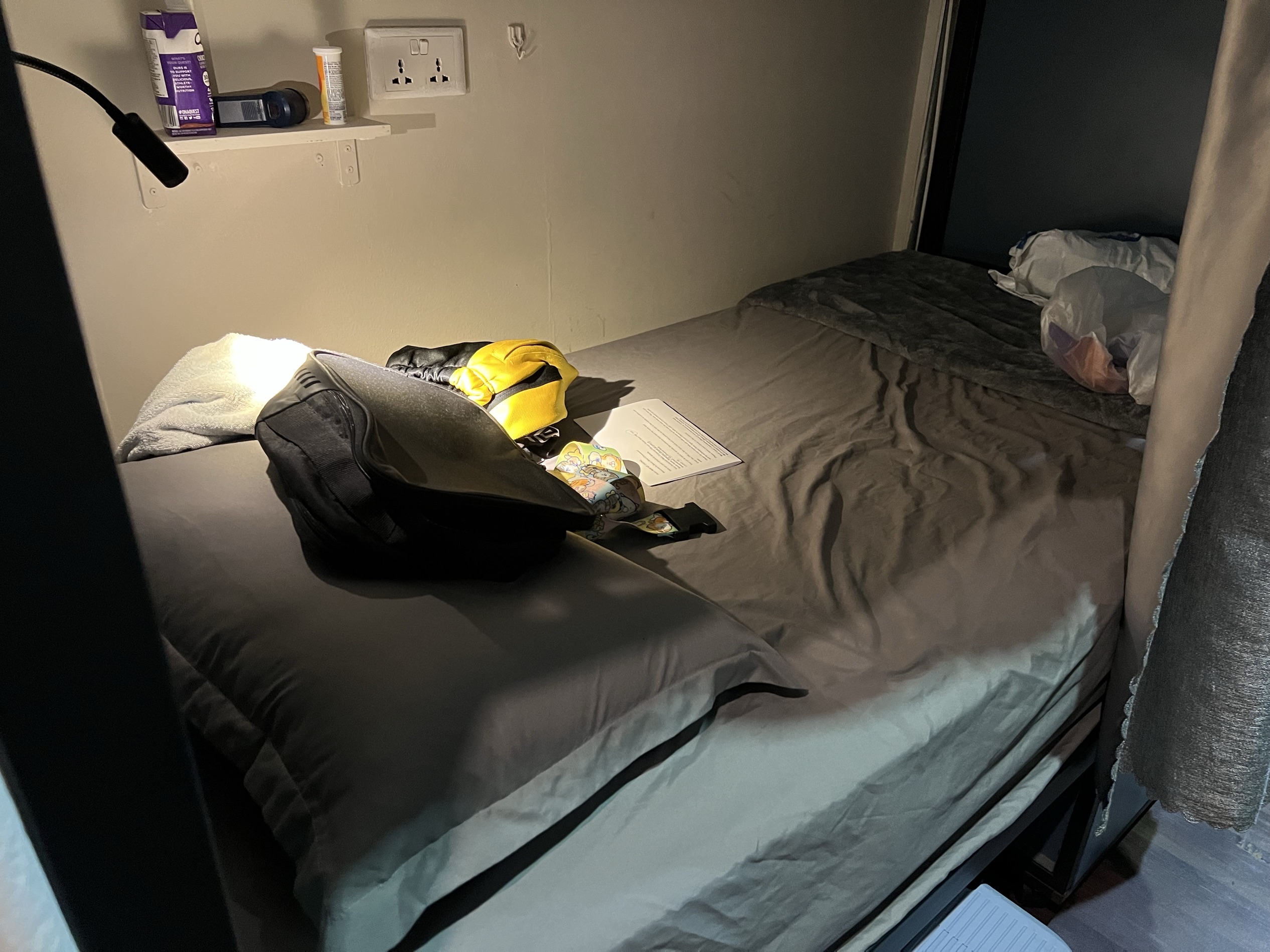 Soft bed. Soft pillow. Very comfy. Clean bedsheet. Eateries and fastfood restaurants nearby. Walking distance less than 10mins. Easy access to train and bus. I think stay there 3 or more nights then i will be provided with towel for shower. Only issue is 2nd deck bed ceiling.. too low.. cant sit up straight
