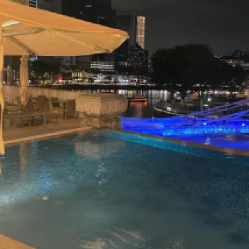 Khách sạn mang đậm nét cổ kính, và màn trình diễn Merlion chỉ cách đó năm phút đi bộ, nên tôi khuyên bạn nên đi dạo buổi sáng. Tôi nhận được một phiếu quà tặng trị giá 100 đô la, nên buổi tối tôi có thể vừa ngắm cảnh đêm Marina Bay Sands vừa nhâm nhi cocktail tại quầy bar trên tầng thượng của Khách sạn Fullerton Bay. Thật không dễ chịu khi bị đuổi về nhà n*** sau khi trả phòng, nhưng tôi rất vui vì được ngắm cảnh và thưởng thức bữa sáng tuyệt vời. Người làm món trứng ốp la cho tôi đã nói chuyện với tôi bằng tiếng Nhật, điều mà tôi rất thích.