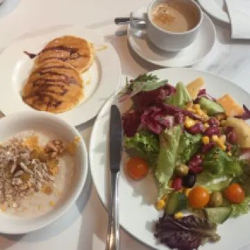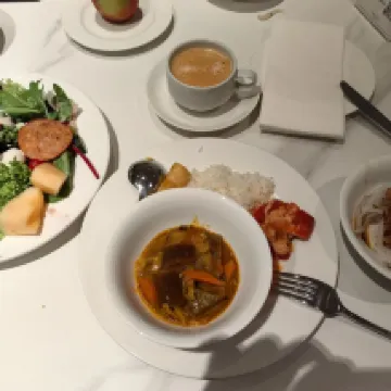 Bữa sáng rất đa dạng và thay đổi mỗi ngày nên bạn sẽ không cảm thấy nhàm chán. Tôi rất thích cà phê ăn sáng của họ, rất giàu chất béo. Nhà hàng ăn sáng cũng phục vụ bữa ăn vào những thời điểm khác, đồ ăn rất ngon và giá cả không đắt. Nếu bạn không muốn ra ngoài thì có thể làm ở nhà hàng.