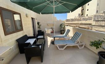 Studio Penthouse with a large terrace measuring 27 square metres. Situated in a side street. An excellent location within a 2 minute walk to the seaside and promenade where you can find Pleasure Cruises, a Ferry to cross over to Valletta, a bus stop with buses connection to Valletta, Mdina, the Sandy Beaches in the North and Cirkewwa from where one can take the Ferry to cross over to Gozo. Shopping centre, bank, supermarket, restaurants, coffe shops and English Language Schools are situated within a stone's throw away.About pets:No pets allowed.About checkOut:Check out before 10:00 AM.About children:Children allowed: ages 0-17.Studio can accommodate max 2 including a child.About checkIn:Check in after 3:00 PM.About smoking:Smoking is not permitted.About minBookingAge:Minimum age to rent: 21.About events:No events allowed.