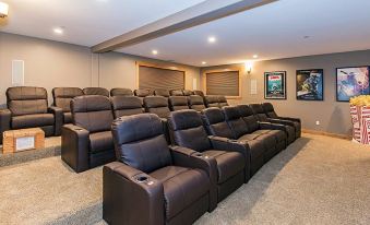 Movie Theater has seating for 23 people, 140 inch HD Screen.
