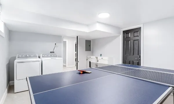 The dining tables were so nice. We could all fit to eat. We put the 2 tables together for a fancy prime rib dinner and played lots of games together. They also had a high chair for the little one which was way nice. It did need to be cleaned before we used it. Food from someone else on it. We loved the theater room. When we arrived we couldn’t find the Apple Remote and the owners were helpful in figuring it out. The couch cushions were full of popcorn and a sock. We loved using the hot tub, all the rooms and bathrooms were great. We did have to go buy laundry pods to wash towels.