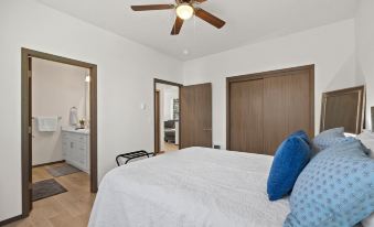 The cozy bedrooms feature a queen bed and a twin bed. Simply perfect for a small group of guests or traveling medical staff.