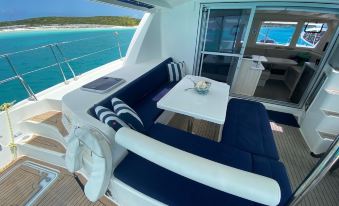 Our sailing catamaran named Summer Camp and captained by Glenn Wakefield, enjoys full en-suite bedrooms with bathrooms & a salon convertible queen means this catamaran can comfortably sleep up to 6 guests (or more with kids). You have multiple inside and outside lounging locations for group fun, or seeking your own privacy, both shaded and sunny.