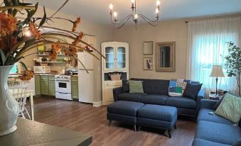 This home offers 2 bedrooms and 1 bath. 1 bedroom has a queen bed and the other has 1 full and 1 twin. There is a roomy living room with open concept fully furnished eat in kitchen. Lot of yard space to enjoy outdoor games or grilling with friends and family. Relax in the evening around the fire pit and take a dip in the hot tub.