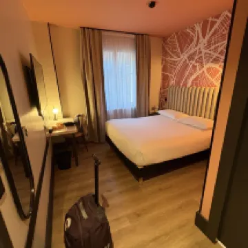 Phòng không nhỏ và có máy lạnh trung tâm. Bữa sáng đã bao gồm trong giá phòng và vị trí rất tốt, n*** đối diện ga tàu. Khách sạn có tủ khóa có cài đặt mật khẩu, rất tiện lợi. Nhìn chung, kỳ nghỉ của tôi rất hài lòng.