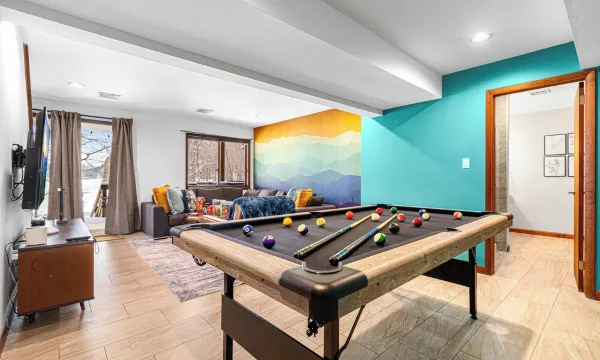 • Game room with pool table, LED foosball, arcade games, and board games