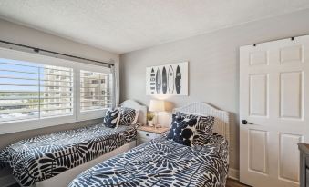 Beautiful two story gulf front two bedroom condo . The master bedroom has a queen bed with a balcony overlooking the Gulf of Mexico . Second bedroom has 2 single beds with dune lake views . The living room has a pull out sofa that can sleep 2 , also has a balcony overlooking the pool with dune lake views . There is free parking , and boat parking is available for an additional