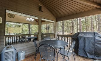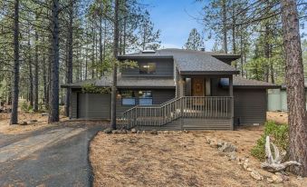 This fantastic pet-friendly vacation home is ideally located in the heart of Sunriver on a quiet cul-de-sac with just a 5-minute walk to both the Village and SHARC. This split-level charmer has 3 spacious bedrooms on the ground floor while offering all the amenities for a perfect getaway. This home comes with 8 SHARC passes, open main floor with a beautifully vaulted cedar planked ceiling, two covered decks sprawling the back side of the home, a covered hot tub, AC, wood burning fireplace, indoor and outdoor games, 7 adult and 4 youth bikes, and a BBQ.About pets:Pets allowed: dogs less than 50 lbs per pet (limit 2 pets total).About checkOut:Check out before 11:00 AM.About children:Children allowed: ages 0-17.About checkIn:Check in after 4:00 PM.About smoking:Smoking is not permitted.About minBookingAge:Minimum age to rent: 21.About events:No events allowed.