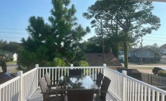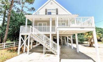 Cozy 2 story single family house on stilts, plenty of parking and room under the house for parking and outdoor living. Large open floor plan with lots of natural light uniting the kitchen dining area and living room, French doors opening out to large deck off the kitchen . There is breakfast counter with barstools, well equipped kitchen and washer and dryer on main floor. One Bedroom and full bathroom on the main floor and other 2 bedrooms and full baths upstairs . The living room has 2 pull out sofas, TV in all resting rooms so you can be entertained if you wish to be or sit back and enjoy the breeze of the ocean. Short walk to the beach, couple blocks from restaurants and many play-grounds. 10 minutes drive to Market Commons, Myrtle Beach, airport, golf courses, Murrells Inlet Marsh Walk and shopping.About pets:Pets allowed: dogs and cats (limit 2 total).About checkOut:Check out before 10:00 AM.About children:Children allowed: ages 0-17.About customRules:The person (over 21 years of age) responsible for the reservation must be occupying the house during their stay..Your pets are welcome, please read the terms and and oblige to the pet(s) fee(s)..About checkIn:Check in after 4:00 PM.About smoking:Smoking is not permitted.About minBookingAge:Minimum age to rent: 21.About events:No events allowed.