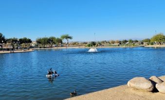 There are many exciting things to do while in Surprise. All of the following are less than a 5 minute car ride from the condo: Community Park Pickleball Courts, Surprise Aquatic Center, library, Spring Training camp for both the Texas Rangers and World Series Champs Kansas City Royals!, tennis courts, and even a man-made lake for fishing. A 30-40 minute car ride can get you to see a Arizona Cardinals football game or Arizona Coyotes hockey game. There are numerous golf courses in the area and the Phoenix Sky Harbor airport is only 30 minutes away as well. There are many restaurants and great shopping that awaits you. You won't be disappointed!About pets:No pets allowed.About checkOut:Check out before 11:00 AM.About children:Children allowed: ages 3-17.About checkIn:Check in after 4:00 PM.About smoking:Smoking is not permitted.Vaping/smoking not permitted (fines charged).About minBookingAge:Minimum age to rent: 27.About events:No events allowed.