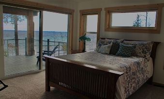 Very unique property with no neighbors on the bay for 1/2 mile to the south and 1/4 mile to the North. Simply stunning private views of Grand Traverse Bay with fire pit area. While it is walking distance to the Leelanau Sands Casino (across the street), you can have all the privacy you wish in a cottage with an unbelievable view of the bay. (Guests have remarked how amazing it is to wake up with floor to ceiling windows with a panoramic view of the bay and the sunrise) Please see the map in the pictures on getting to the home. Just doubled the living space with a brand new addition and have completely redone every aspect of the home from the kitchen, bathrooms to outside deck. The common response we get is that the pictures do not do it justice. We think you will agree. About pets:No pets allowed.About checkOut:Check out before 10:30 AM.About children:Children allowed: ages 0-17.About checkIn:Check in after 4:00 PM.About smoking:Smoking is not permitted.About minBookingAge:Minimum age to rent: 25.About events:No events allowed.