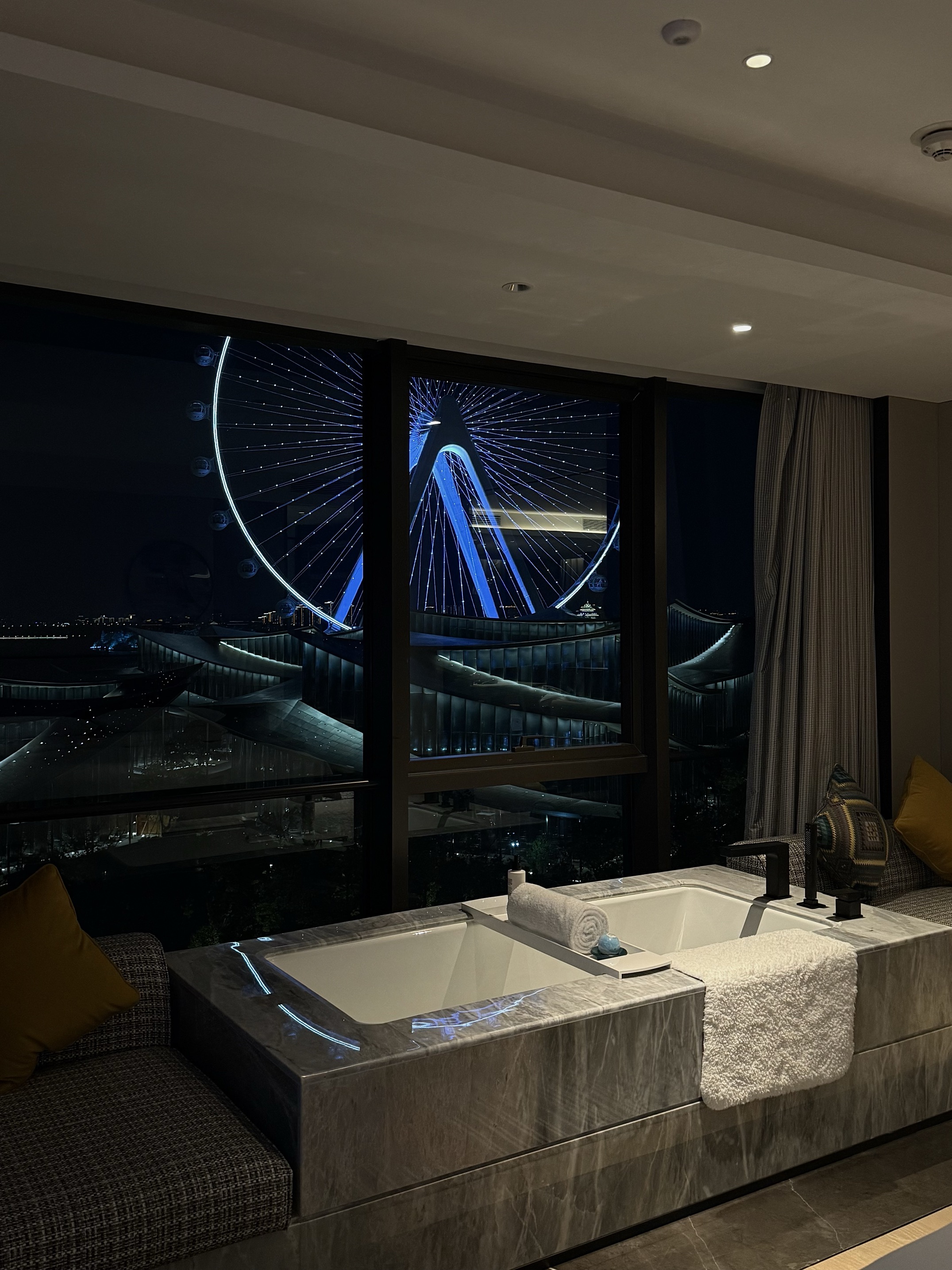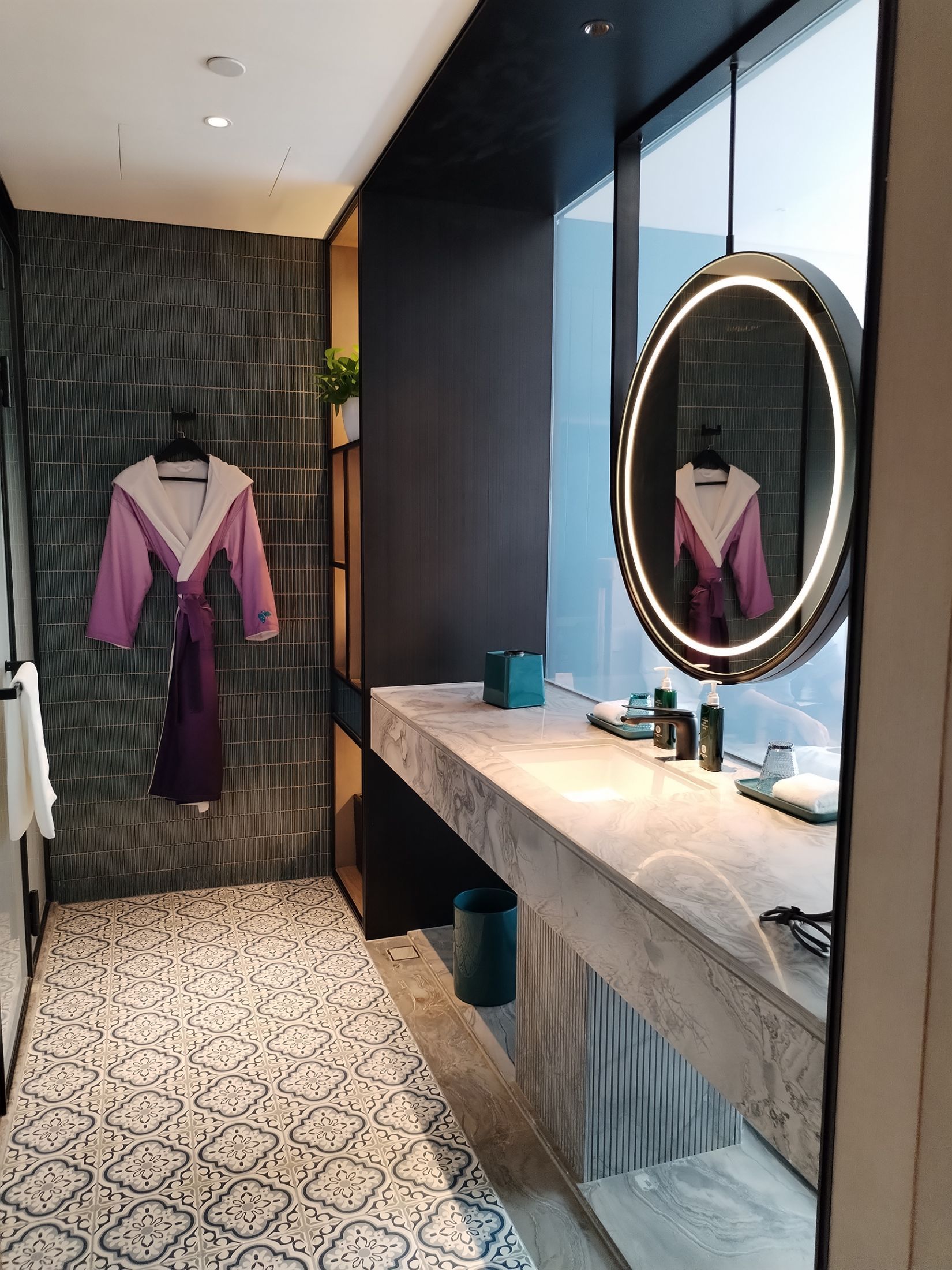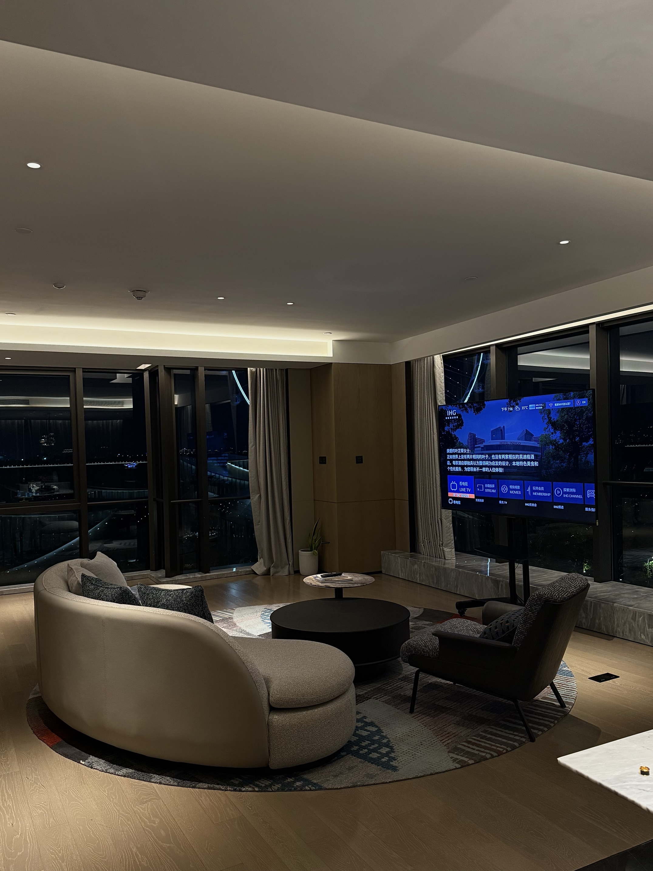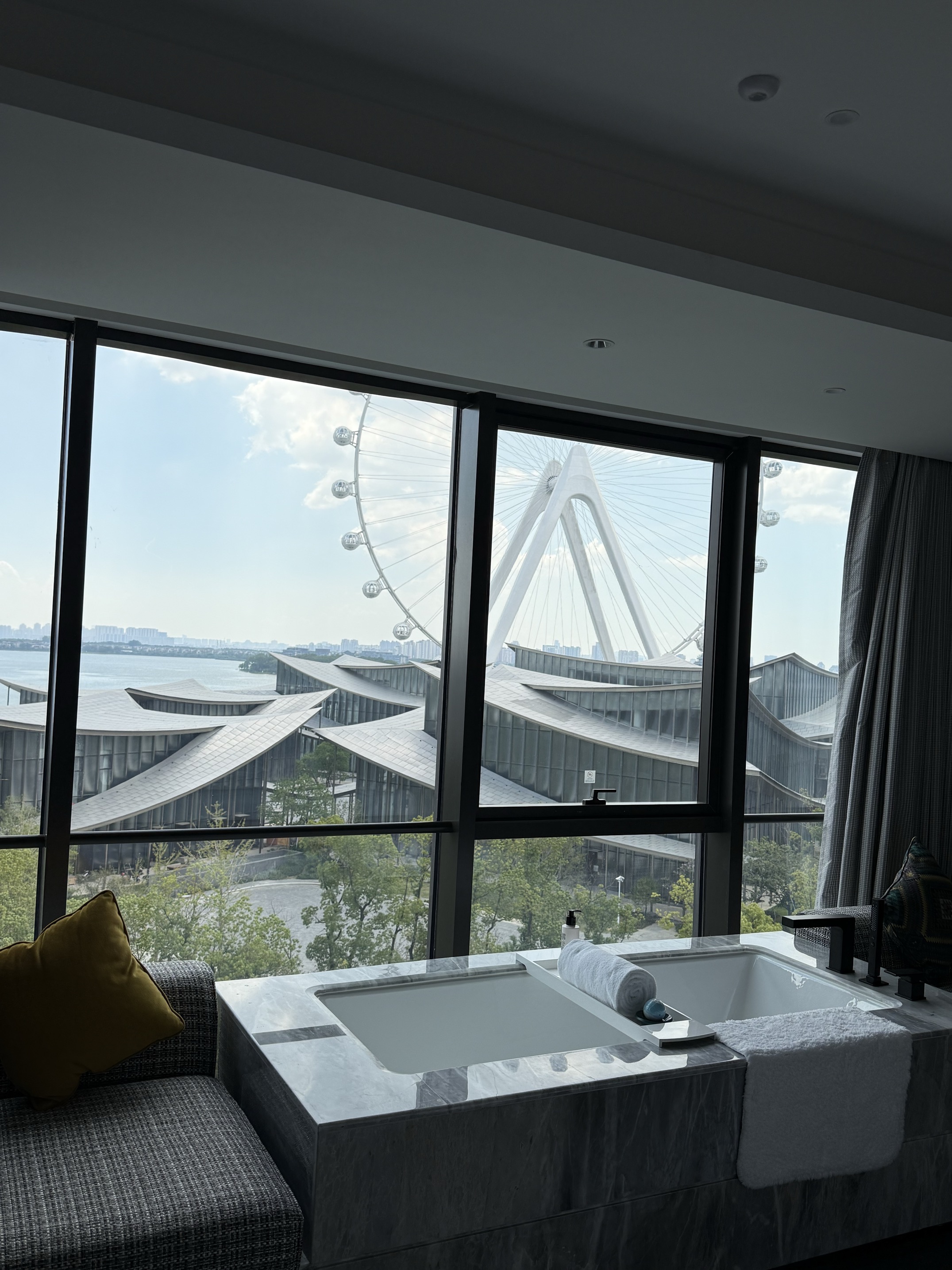 The suite itself was a standout: sleek modern design blended with subtle Suzhou-inspired elements, while the lake-view bathroom offered breathtaking vistas day and night. Scott even arranged a private stroll along the lakeside and recommended hidden gems nearby.