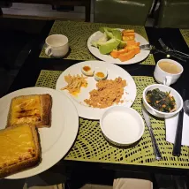 Bữa sáng: Bữa sáng sẽ thay đổi một chút mỗi ngày, mặc dù sự lựa chọn món ăn không đặc biệt nhiều, nhưng các món ăn hàng ngày nhiều hơn, nhưng đơn giản và ngon miệng (ví dụ: trứng bác/cơm chiên/mì xào/salad bar/bánh khoai tây chiên/chiên). sườn heo/giăm bông/tất cả bánh mì nướng/bánh mì nguyên hạt/rau chiên/cà phê/sữa đậu nành/nước cam, v.v.)