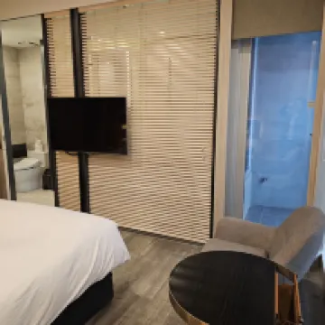 hotel was spotlessly clean with a nice smart tv that had netflix/disney+/prime as well as a filtered water filter! bedside tables also had international outlets for ease of charging, snack counter and drinks in the fridge were also on the house and would be topped up daily! had a very pleasant stay, would surely rebook again when i’m back in taipei :)