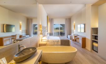 A lovely glamorous hotel with hard-working, pleasant staff. Beautifully decorated in the rooms and public areas. We had a swim-up room which was lovely, but - no fault of the hotel - didn't get the sun until around 4pm, so we went to the main pool. All the sunbeds were extremely comfortable, and there were plenty, so none of the dreaded sunbed wars. Special mention for the cleaners and restaurant workers, who were all wonderful. Sadly there wasn't much open around the hotel and in the village as it was late October. Also appreciated the fridge with free cold drinks, coffee maker with pods replenished daily, the free safe and bathrobes and slippers.