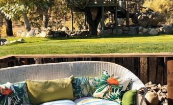 You are located on the 1 acre Sequoia Pacific Realty Center in the private dedicated riverside of this property. The ultimate best of all worlds vacation spot! The gardens have just been installed, and continue to grow and be developed. The property includes a wonderous variety of horticulture, large specimen sago palms, roses, citrus, azaleas, Camilla and seasonal flowers and California natives.