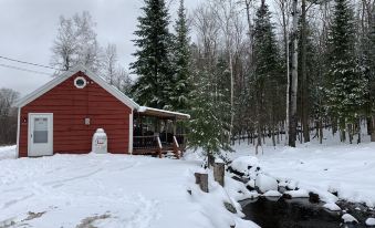 Welcome to "Kim's Kamp" at the Adirondacks! The ultimate off-grid GLAMPING experience! This historic Little Red Cabin was once a school house in the early 1900s, how cool is that? The interior decor highlights the old school and was curated to provide you with comfortable amenities while staying true to the camping experience. This is an off-grid cabin with NO running water but has electricity. We are located only 28 min. from Lake George, 20 min. from Gore Mountain, Revolution Rail, & trails.