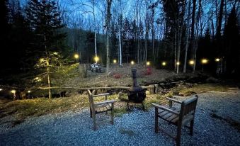 The little cabin has a beautiful brook running through the property all year-round. This is where you will get your water source from, along with the rain barrels. Perfect to sit on the deck sipping your coffee or glass of wine while hearing the sound of the water and trees. The location is breathtaking and great to disconnect from the outside world. To add on to your romantic experience, at night you can walk over the little mini bridge over to the fire pit surrounded by the ambient lighting and just unwind. There is also a hidden waterfall only 5 minutes away!