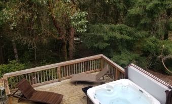 Woodsy Retreat has the trail to the temperate rain forest, and outdoor spa.