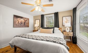Located in Tomball, "The Rustic Bungalow" features a fresh design in this 1940s home, located just half a mile from the trendy yet established Old Town Tomball. Enjoy shopping for antiques & boutique shops, savoring the rich food culture, & taking a stroll through the weekend farmers market. With Texas Southern hospitality, a fully stocked kitchen & luxurious bedding, you are sure to enjoy your stay, including 4 smart TVs. Additionally, we are conveniently located only 2 miles away from the Boxwood Manor.About pets:No pets allowed.About children:Children allowed: ages 0-17.About smoking:Smoking is not permitted.About events:No events allowed.