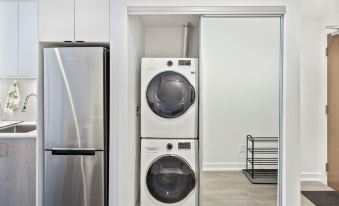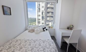 Your room is designed with comfort and elegance in mind. Soft, neutral colors create a calming atmosphere, while the high-quality linens and plush pillows on the bed invite you to sink in and relax. The room features large windows that provide breathtaking views of the beach and High Park, ensuring that the beauty of the surroundings is always within sight. The decor is a perfect blend of coastal charm and modern sophistication, with tasteful furnishings and artwork that reflect the natural beauty of the location.