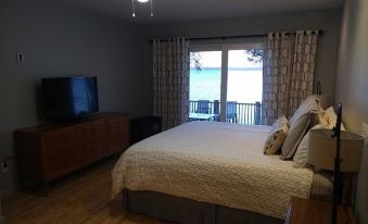The master suite features a king size bed and provides an unsurpassed views over the lake. There is a queen size bed in each of the other two guest rooms. Roll-away beds are also available.