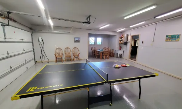The Garage has been converted into a Game Room with a Ping Pong Table.