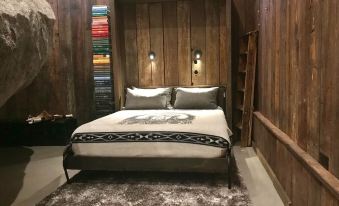Murphy - tucked behind the rock is a custom full-sized murphy bed