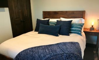 Master - Live edge walnut California King Bed with 50” flat screen TV.