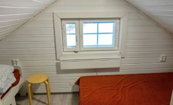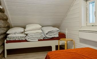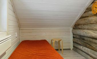 Kelo log-built cabin, facilities on three floors, built in 2022. The middle floor is the entrance floor and has living room / kitchen. The room height in the middle floor is lower than normal, 190 cm. Access to balcony and open terrace from the middle floor. On the upper floor, there are two beds and an additional bedroom with 2 beds. The upper floor has a sloping ceiling. The length of the another bed located in the bedroom can be adjusted. In the picture, the length is 170 cm. The bed can also be placed in some another location on the upper floor, then the bed can be extended to normal length. WC also on the upper floor. Access to the uppermost balcony from the upper floor. On the ground floor, there is sauna, washroom/WC and fireplace room (sofa bed as an alternative bed; the maximum number of people is 4).