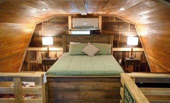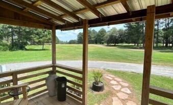 Enjoy beautiful views of the golf course from our 2-story, 3-bed, 1-bath Georgia Golf Cottage located at Wanee Lake Golf & RV Park! The first floor of the Georgia Golf Cottage includes a kitchen, full bathroom with body wash, living room with smart TV, dining table, and porch with a rocking chair. The second floor of the Georgia Golf Cottage includes a queen bed and two twin beds. Tee off from Hole 1 right outside your doorstep!