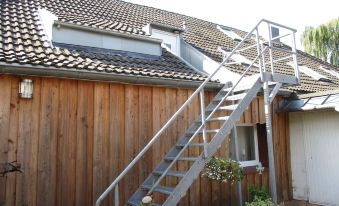 We offer a self-contained apartment on the first floor, with separate entrance, which can be reached via a steel staircase. A parking space is in front of the house.