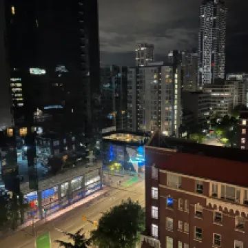 Dịch vụ tại quầy lễ tân rất tuyệt vời, họ cung cấp cho chúng tôi tất cả thông tin cần thiết cho kỳ nghỉ. Tầm nhìn từ phòng rất đẹp vì chúng tôi được bố trí ở tầng cao và có thể ngắm nhìn toàn cảnh trung tâm thành phố Vancouver. Nội thất trong phòng hơi cũ, và áp lực nước ở vòi sen hơi yếu. Vị trí của khách sạn rất thuận tiện vì nằm ở khu vực trung tâm thành phố. Nhìn chung, kỳ nghỉ của chúng tôi rất tốt.